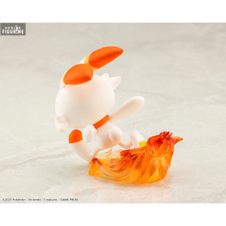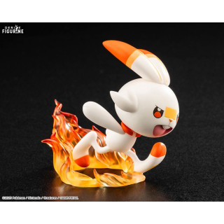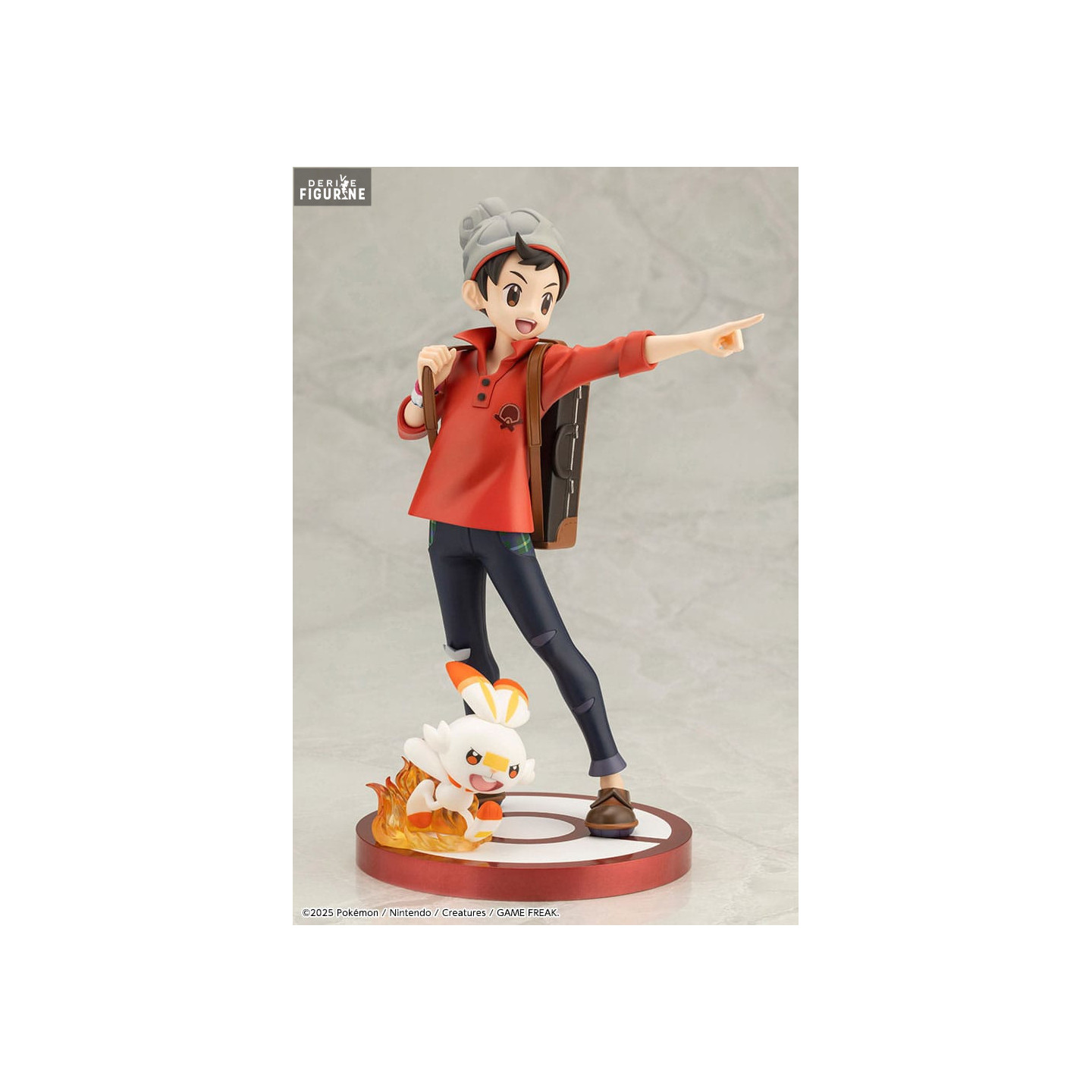 Victor, one of the iconic protagonists from Pokémon Sword and Shield, is joined by his trusty partner, Scorbunny, in this stunning figure from the ARTFX collection. Captured with remarkable dynamism, Victor is depicted in a confident pose, ready to tackle all the challenges of the Galar region. His signature outfit, featuring his red sweatshirt and distinctive gray beanie, is perfectly recreated, along with his backpack, a symbol of adventure. Beside him, Scorbunny, the Fire-type Pokémon, is shown in action, surrounded by realistic flames that reflect its boundless energy.