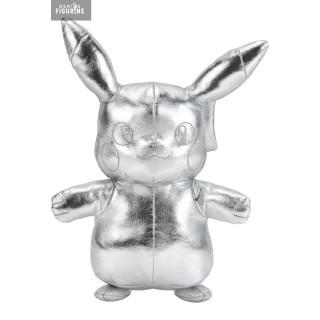 Celebrate 25 years of the Pokémon universe with this stunning official Pikachu plush in an exclusive silver edition! As the undeniable symbol of the Pokémon franchise, Pikachu shines in a metallic finish to mark this unforgettable milestone. Featuring its playful smile and signature round cheeks, this plush perfectly captures the cheerful and endearing spirit of the most famous Pokémon, while adding an elegant touch with its silver design.