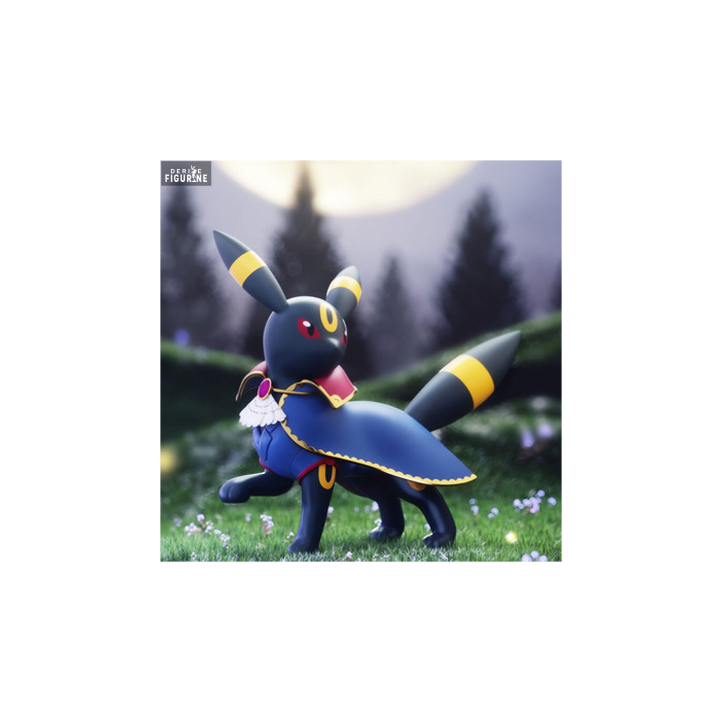 As night falls, Umbreon takes the spotlight—regal, quiet, and commanding. This special version from Pokémon Unite dresses the Dark-type evolution in a royal midnight-blue cape, trimmed in gold and clasped with a violet gemstone brooch.