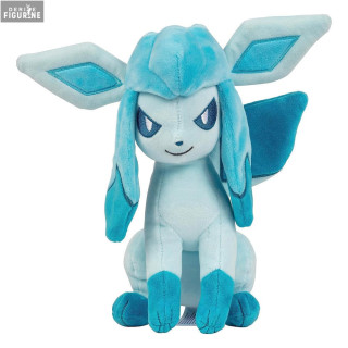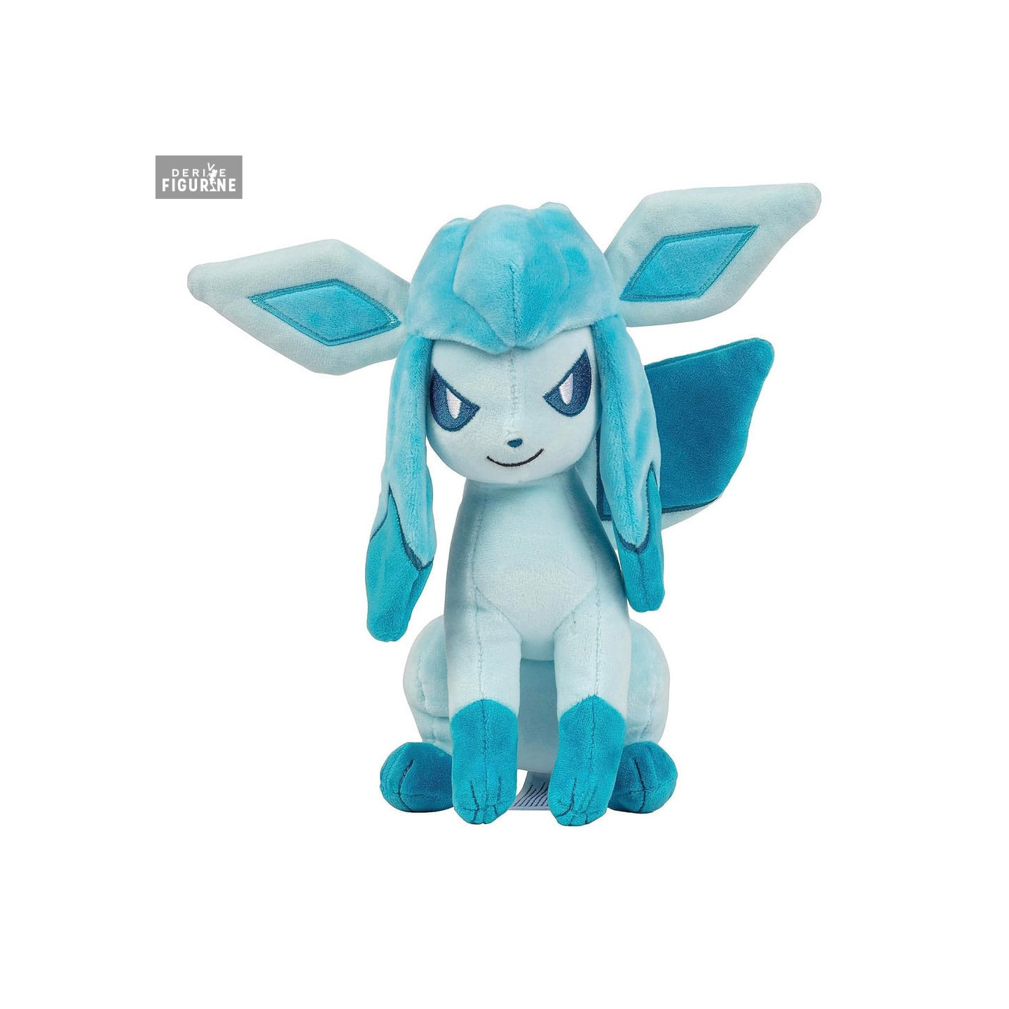 Official plush of Glaceon which measures approximately 20 centimeters high. The manufacturer is Jazwares.