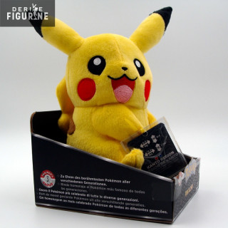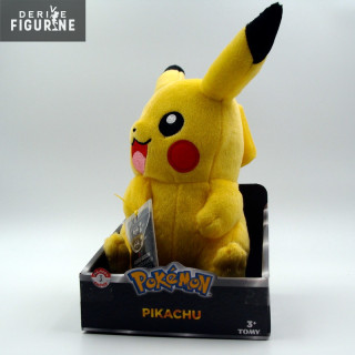Plush Pokemon representing Pikachu. About 20 centimeters. Plush polyurethane foam and polyester fiber. The manufacturer is Tomy.