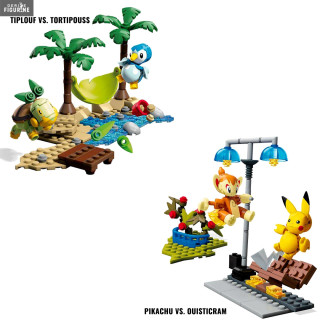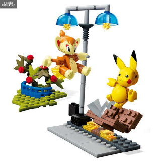 Official construction game of your choice between Pikachu vs. Chimchar (127 pieces) or Piplup vs. Turtwig (120 pieces). It is from the Mega Construx collection. The manufacturer is Mattel.