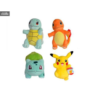 Official plushies of Pikachu, Charmander, Squirtle and Bulbasaur measuring about 20 centimeters high. The manufacturer is BOTI.