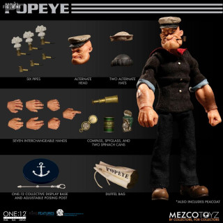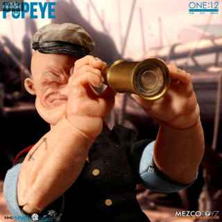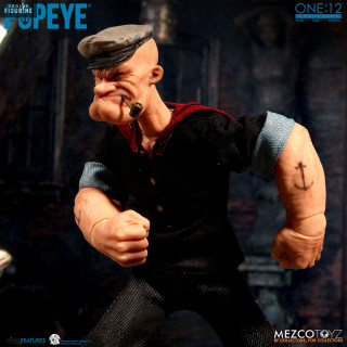 Official figure of Popeye in PVC which measures approximately 14 centimeters high, scale 1/12. It is from the One:12 collection. The manufacturer is Mezco Toys.