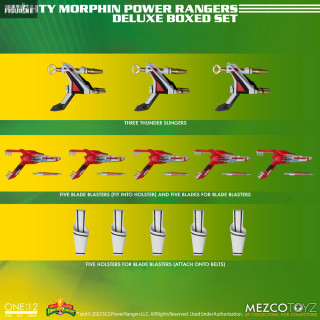 Official figures of Power Rangers which measure approximately 16 to 17 centimeters high. They are from the One:12 collection. The manufacturer is Mezco Toys.