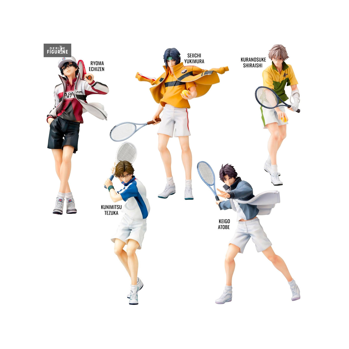 Official figure of your choice between Ryoma Echizen, Seiichi Yukimura, Kunimitsu Tezuka, Keigo Atobe or Kuranosuke Shiraishi in PVC about 21 centimeters high to scale 1/8. It is from the ARTFX collection. The manufacturer is Kotobukiya.