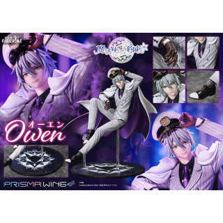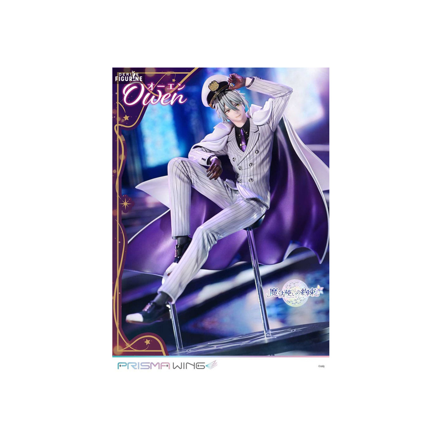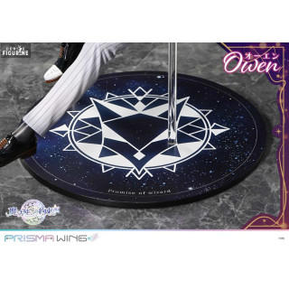 This PVC figure, standing approximately 23 centimeters tall at a 1/7 scale, depicts Owen in a relaxed yet majestic pose. Clad in a meticulously detailed striped suit and adorned with a violet-lined cape, he exudes sophistication and an air of mystery. Accessories like his captain’s hat and intricately crafted shoes add an extra layer of elegance. The base, inspired by an astral theme, completes the piece perfectly, making it seem as though Owen is ready to rule the magical realm.