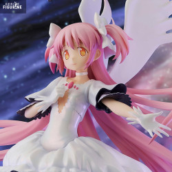 This 18-centimeter-tall PVC figure from the Banpresto Evolve collection captures the majesty of Madoka in her ultimate form. Crafted by Banpresto, it is rich in detail, especially with her translucent wings unfolding behind her like an aura of pure light. Her dress, adorned with galactic patterns and subtle purple accents, flows around her with a fluidity that gives the impression she is floating. Madoka’s gentle yet resolute expression reflects her commitment to protect others, even at the cost of her own existence. The combination of her divine attire and compassionate gaze makes this piece a touching and memorable representation of this iconic character.