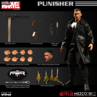 Official Punisher figure which measure about 17 centimeters high, scale 1/12. They are from the One:12 collection. The manufacturer is Mezco Toys.