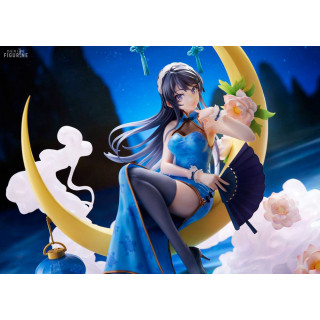 Official figure of Mai Sakurajima, Chinese Dress in PVC which measures approximately 25 centimeters high, scale 1/7. The manufacturer is Taito.