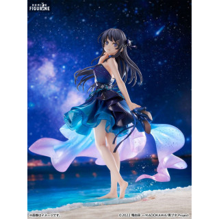 Official figure between Mai Sakurajima, Starry Dress in PVC which measures approximately 25 centimeters high, scale 1/7. The manufacturer is CyberZ.