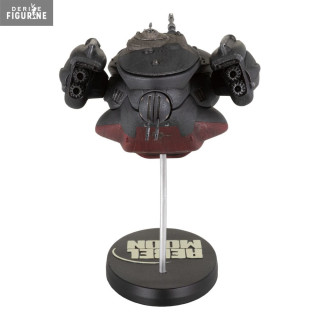 The figurine is beautifully hand painted, showcasing the exceptional quality of the craftsmanship. To further accentuate this piece, the vessel is held aloft by a metal rod, resting on a base adorned with the "Rebel Moon" logo, providing a majestic presentation.