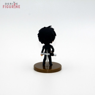 Second hand and official Hibari Kyoya Gashapon in PVC which measures about 7,5 centimeters high. Hibari holds a baton in each hand, unfortunately, because it is a second hand object, it misses one. It is still an object in perfect condition. The manufacturer is Takara Tomy A.R.T.S, sold without box.