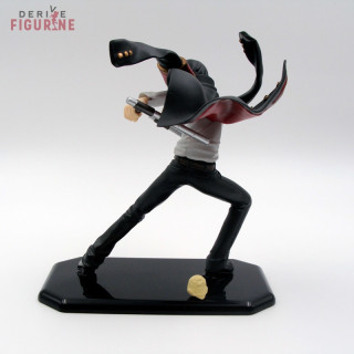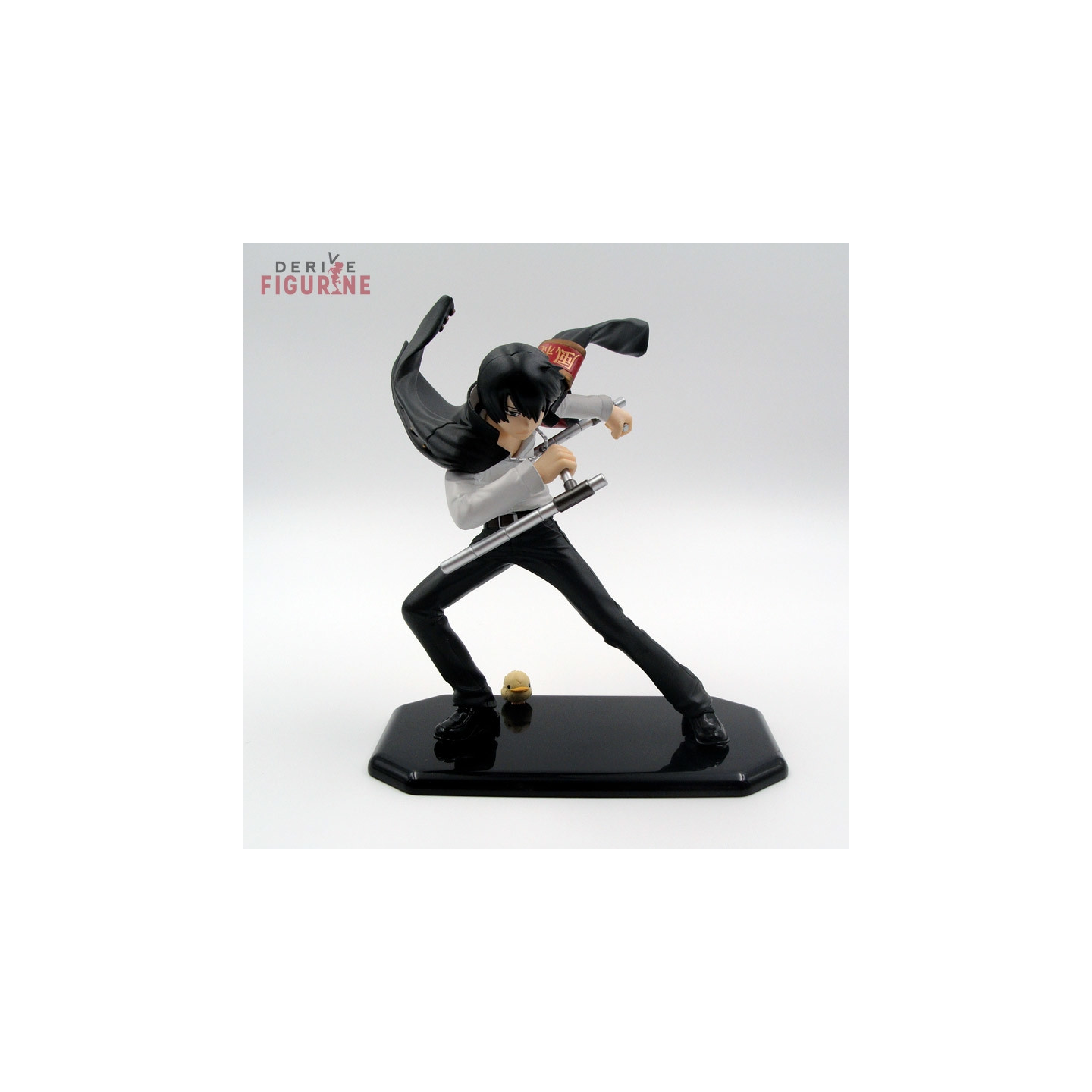 Second-hand and official Hibari Kyouya figure in ABS/PVC about 15 centimeters high to scale 1/8. Contains all the accessories: the weapons and the bird. This is second-hand item in perfect condition from the Super Real Figure DX collection, but sticky in places. The manufacturer is Yujin, sold with box in fairly bad condition, worn.