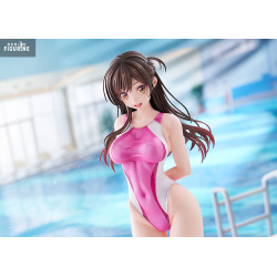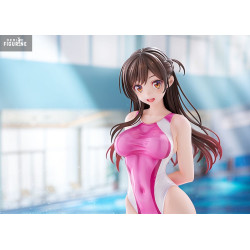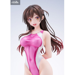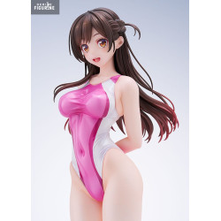 This PVC figure depicts Chizuru in a delicate and seductive pose, wearing a stylish swimsuit that highlights her slender figure. The design of the swimsuit, with shades of pink and white, adds a touch of freshness and modernity to the whole. The details are meticulously sculpted, from the folds of the fabric to the strands of her long, brown hair, which seem to float lightly.