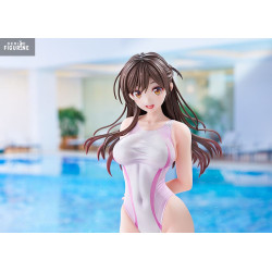 This Pink Line Swimwear figure portrays her in an elegant summer style. Standing on a clear base, Chizuru wears a white one-piece swimsuit accented with pink lines that emphasize her slender silhouette. Her bright smile and lively gaze capture her cheerful and gentle personality.