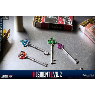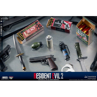 Leon Scott Kennedy is a recurring character in the Resident Evil license. While still a young police officer, he finds himself propelled to Raccoon City to face the ravages of Virus G, which turns humans into zombies. Fortunately, he has provided a fairly large paraphernalia with weapons, ammunition, grenades and even keys. To add realism, her joints allow her to take various poses and her clothes are made of fabric.