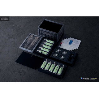 From the Resident Evil saga, here is a box that contains many replicas of Capcom's horrific saga and here is a listing of all the elements: