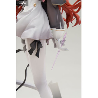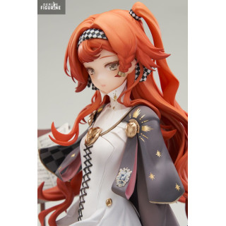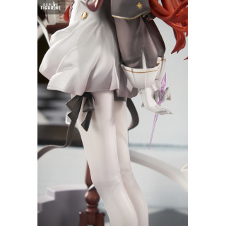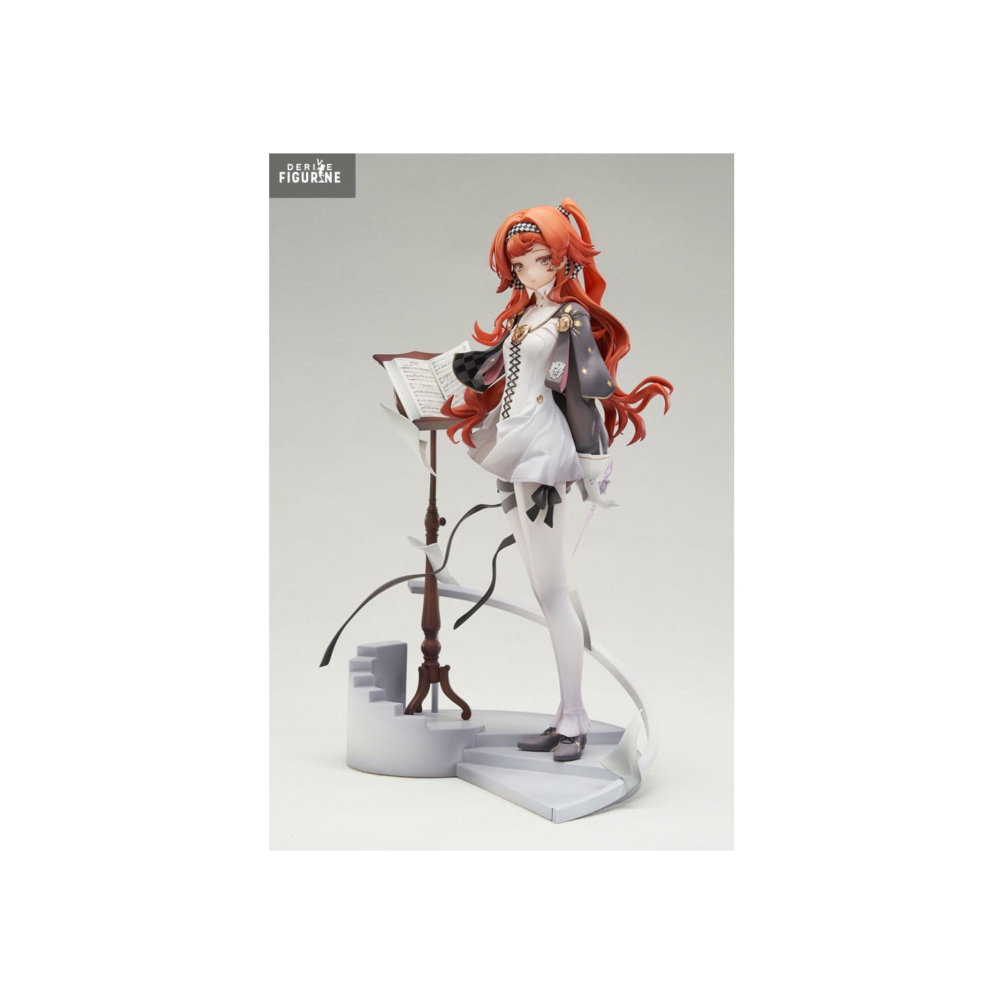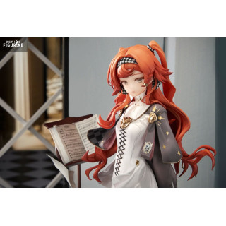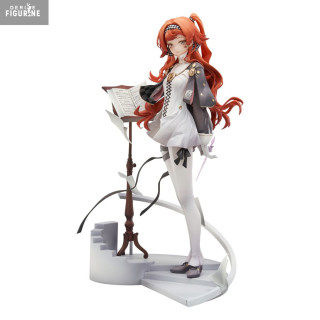In the story of Reverse: 1999, Sonetto captivates with her enigmatic persona. She is portrayed in a poised and sophisticated stance, standing next to a sheet music stand. Her delicately detailed attire, flowing red locks, and serene expression reflect the exceptional craftsmanship of this piece. The surrounding elements, such as the fluttering sheet music and the elegantly designed staircase-like base, add depth and visual appeal, elevating this figure to a true work of art.
