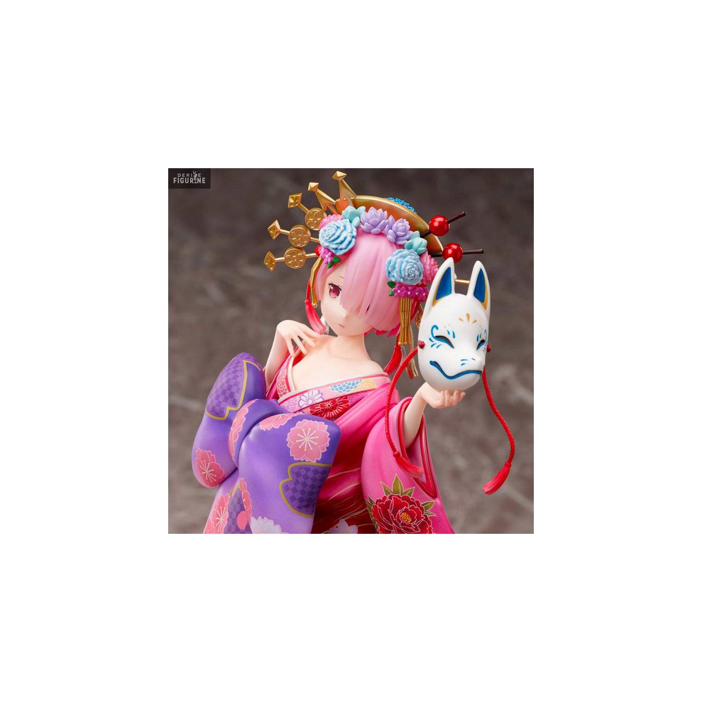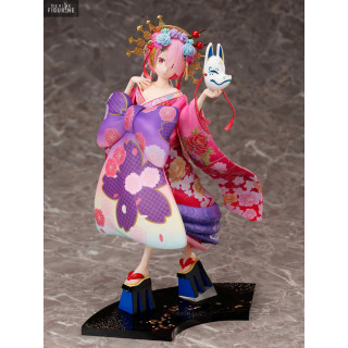 During the Edo period in Japan, the Oiran were courtesans and Ram decided to wear the same outfit. This is probably to convince you to add her to your collection. She is holding a fox mask in her hand and on top of that, if you already have her twin sister figurine, you can make a really nice diorama.