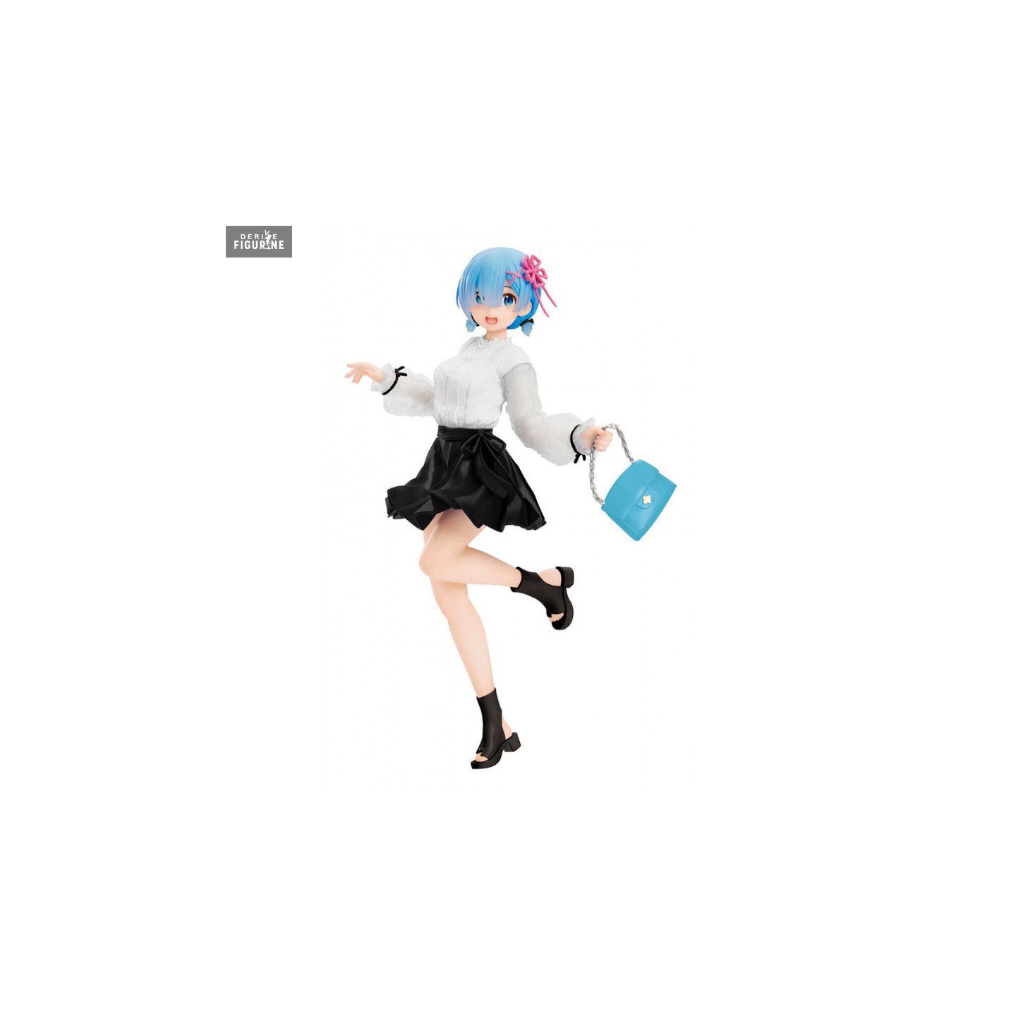 New figurine from the Re:Zero universe for the Rem recognizable twin thanks to her splendid blue hair and it is a realization of the Precious Outing Coordination range in Renewal edition that we have here. Rem is dressed in a super classy way with a white top and a black skirt as well as a blue bag.