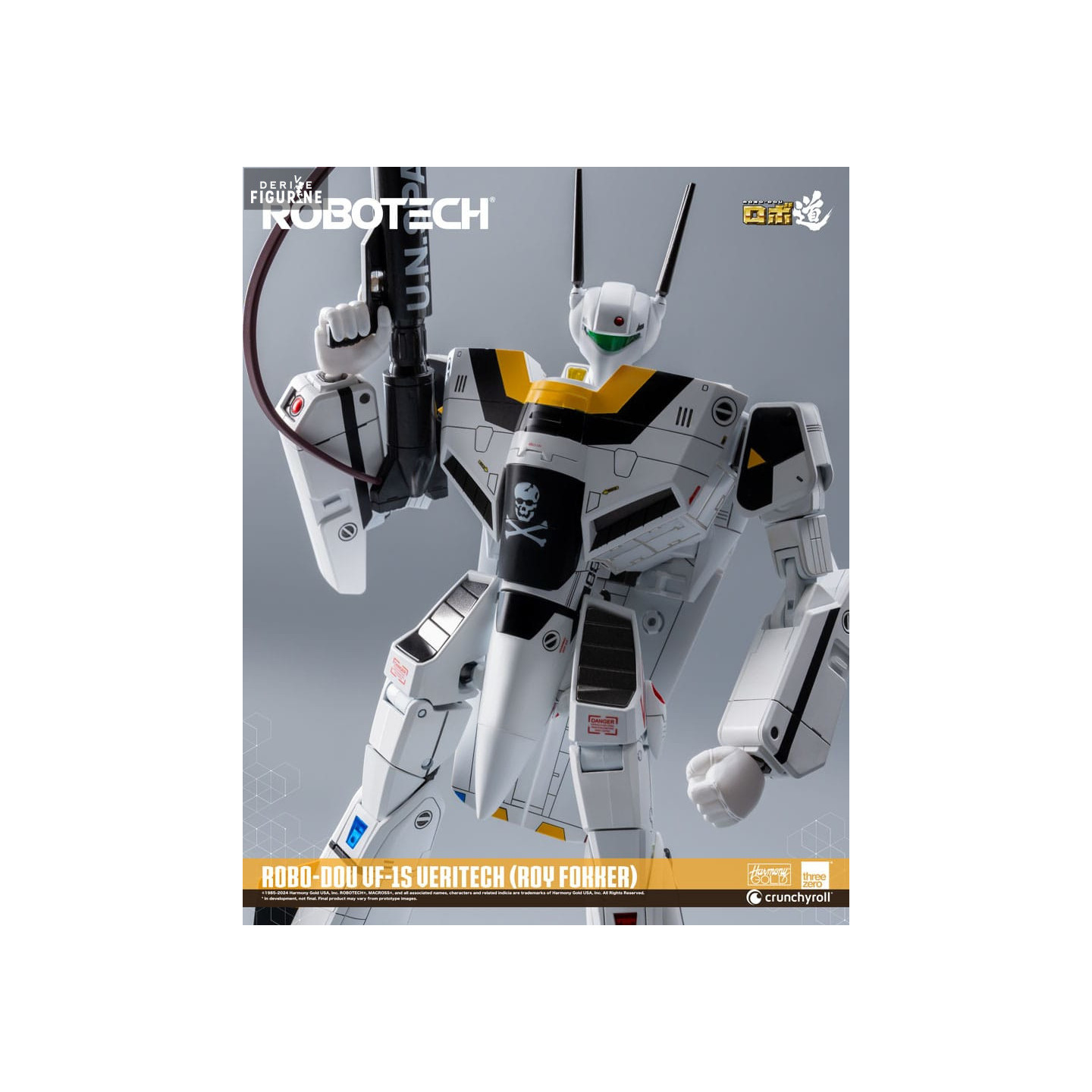 Official figure of VF-1S Veritech (Roy Fokker) in ABS/PVC which measures approximately 20 centimeters high. It is from the ROBO-DOU collection. The manufacturer is ThreeZero.