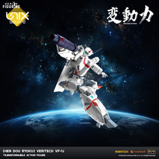 The figure comes with a variety of accessories and multiple interchangeable hands, allowing you to recreate different poses and intense battle scenes. In addition to articulated parts, this model includes transparent elements for flight or propulsion effects and a base for dynamic display. The detailed painting and robust materials give this figure a realistic and sturdy look, true to Robotech's military and technological spirit.