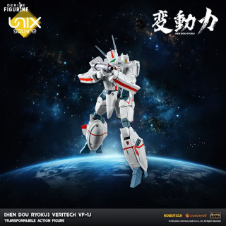 Discover this impressive VF-1J Veritech figure from the iconic "Robotech" universe, crafted in metal and standing approximately 21 centimeters tall. This meticulously detailed model belongs to the Hen Dou Ryoku collection and is produced by Unix Square. Known for its versatility and ability to transform into three different modes (Fighter, Gerwalk, and Battloid), this Veritech is a must-have for any fan of the series. The VF-1J model is especially recognizable for its iconic lines and design inspired by futuristic fighter jets, reminiscent of the epic battles fought to defend Earth from alien invaders.