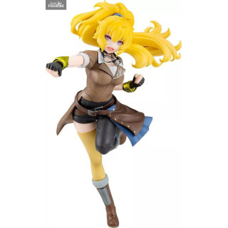 Standing at 17 centimeters tall, this PVC figure captures Yang mid-action, punching forward with her signature confidence. Her golden hair flows dramatically behind her, emphasizing the force of her movement. Dressed in her iconic outfit—brown cropped jacket, asymmetrical black shorts, and mismatched yellow and black leggings—she’s ready to brawl. Her Ember Celica gauntlets are detailed and bold, while her expressive face, piercing purple eyes, and fearless grin bring her fiery personality to life. Every fold, buckle, and detail is faithfully recreated, making this figure as vibrant and bold as Yang herself.