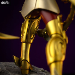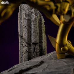 Standing approximately 24 cm tall and crafted from resin at 1/10 scale, this piece shines with detail: metallic armor finishes, textured rock base, and finely curved bow. A striking, faithful tribute to Aiolos—perfect for any Saint Seiya collection honoring noble heroes.