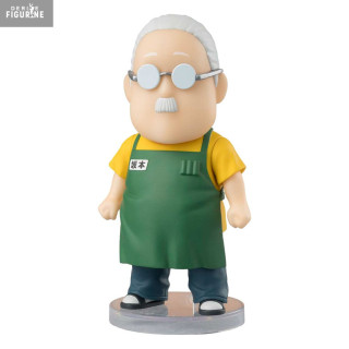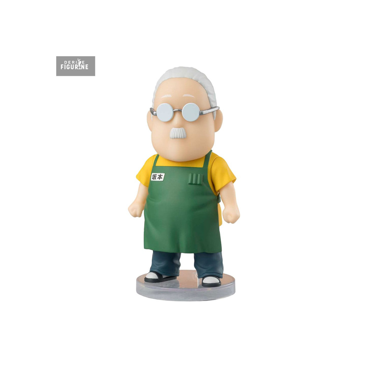 This Figuarts mini figure, produced by Tamashii Nations, perfectly captures the essence of Taro Sakamoto in just 9 cm of height. Designed in an adorable chibi style, it highlights his signature features: his small mustache, opaque glasses, and iconic green store apron. His relaxed stance and stoic expression perfectly embody his unique personality—kind yet undeniably dangerous. A must-have collectible for Sakamoto Days fans looking to add a mix of humor and badassery to their collection.