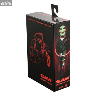Official figures of Jigsaw Killer Red Robe and Billy Tricycle which measure approximately 18 centimeters high. They are from the Ultimate collection. The manufacturer is NECA.