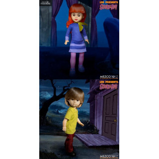 Official figures of Daphne, Shaggy, Velma, Fred and Scooby-Doo which measure about 25 centimeters high. They are from the Living Dead Dolls collection. The manufacturer is Mezco Toys.