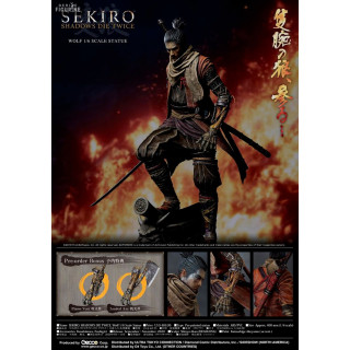 Wolf aka Wolf in VO is the main character and hero of the adventure that you live in the video game Sekiro: Shadows Die Twice. He is a charismatic character and he is an outstanding ninja who, to fight, uses his prosthesis following the loss of his left arm. This statue clearly does honor to our hero!