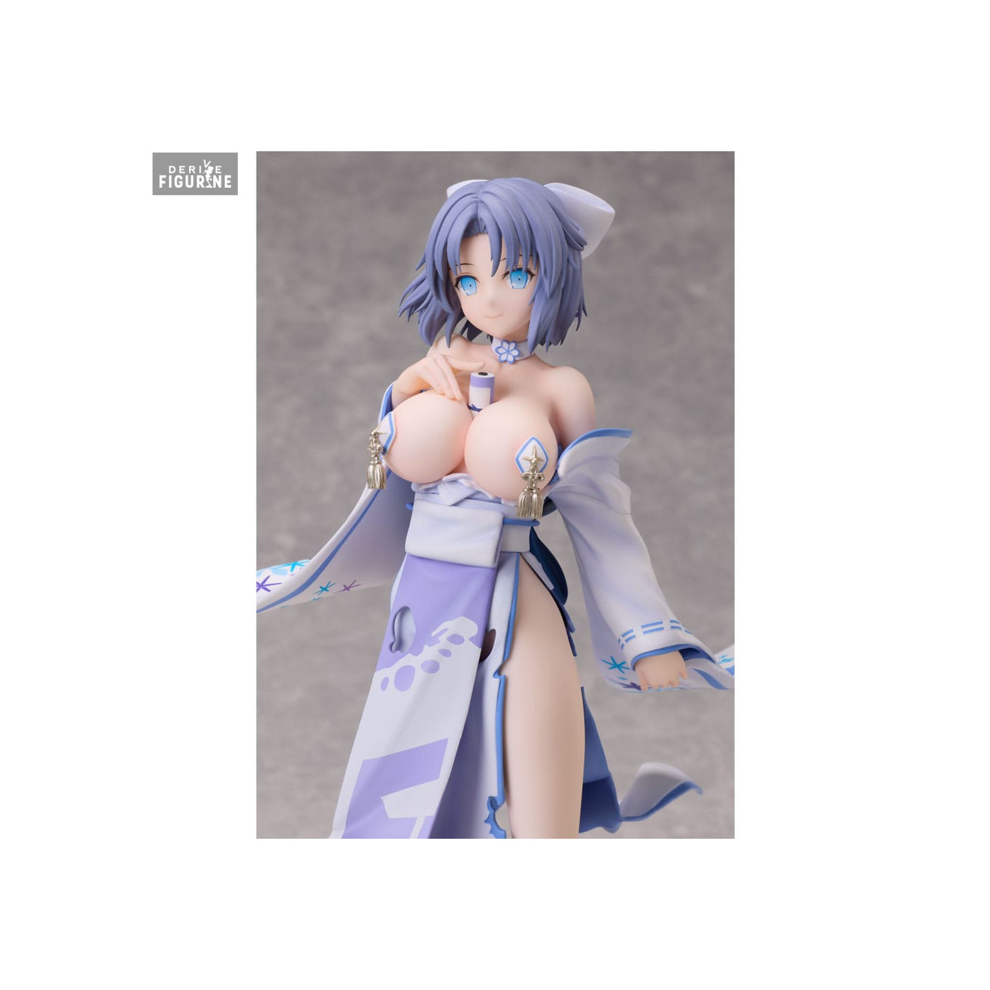 This official figurine of Yumi, produced by the manufacturer FREEing, stands approximately 25 centimeters tall and is crafted at a 1/7 scale. Made from PVC, it captures every fine detail of her character, from the delicate embellishments on her outfit to the subtle expressions on her face. The attention to detail, especially in the cool and calming colors of her kimono, reflects her affinity with ice techniques. This model is a stunning collectible piece for fans of Senran Kagura and Azur Lane, offering an elegant and captivating representation of Yumi, ready to join your collection.