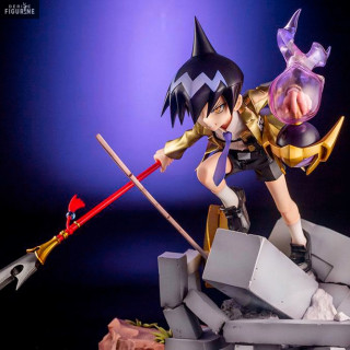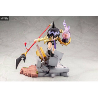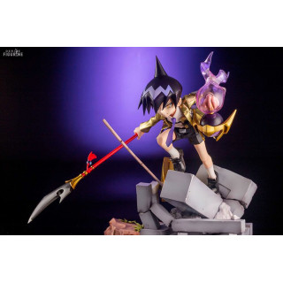Tao Ren is a member of the Tao family and has the nickname Electric Fury. We can see it in full attack with the flaming point and a lance in the other hand. With the floor exploded and its dynamic pose, this figurine is really beautiful and will delight fans of Shaman King.