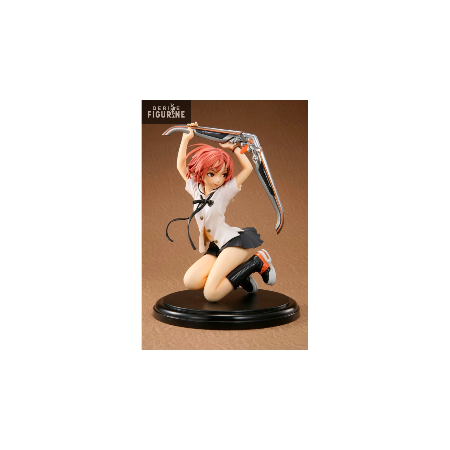 Official Kuniko Houjou figure in PVC about 13,5 centimeters high to scale 1/8. Kuniko is kneeling with his gun above the head. The manufacturer is Chara-Ani.