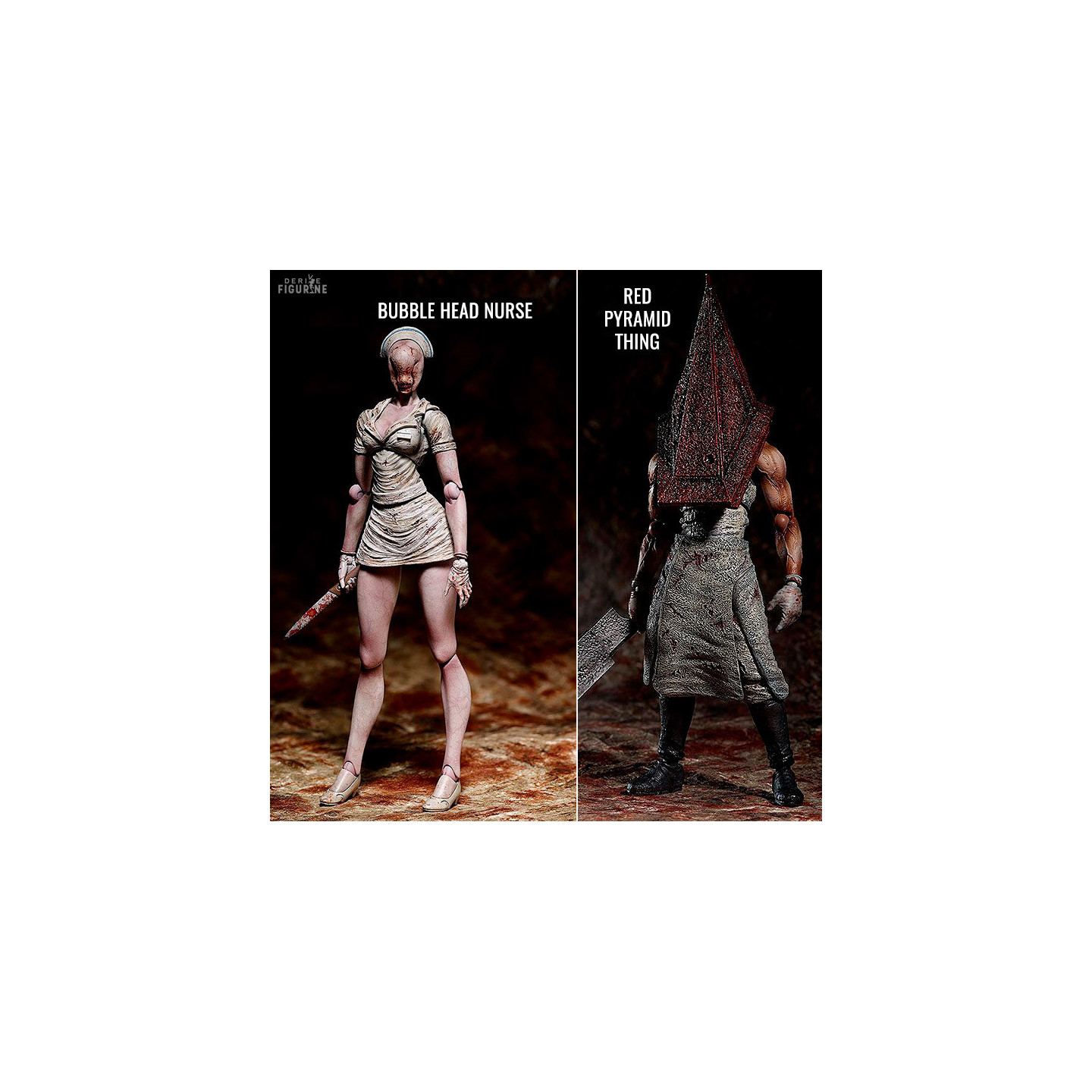 If you love Silent Hill, these two figures are perfect for you. Are you not afraid to step into the shoes of James Sunderland and come face to face with these two monsters? Then it's perfect. On the one hand, you have the Bubble Head Nurse which despite her advantageous chest will not give you a gift, or the Red Pyramid Thing (or Pyramid Head) with his imposing sword and pyramid on his head which will be merciless. The choice is now in your hands.