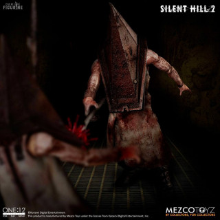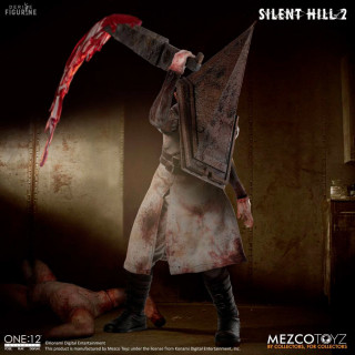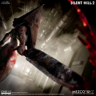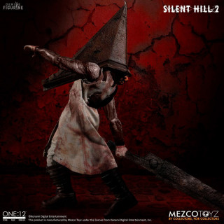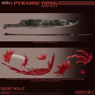 Red Pyramid Thing (Pyramid head) with its blood-covered outfit and its pyramid helmet with rusty metal effect will terrorize you just by looking at it. This towering and iconic monster first appeared in Silent Hill 2. Its 2 meter knife does not go unnoticed and will remind you of the stressful sound of its blade sliding on the ground ... it is also accompanied by its large metal spear that you can exchange according to your desires. For more realism, you can embellish its paraphernalia with blood which can be attached to different places. A bloodied dummy is also provided if you want him to drag a corpse to make him look even more ghastly, as well as 9 Creeper insects that will accompany him to immobilize his prey.