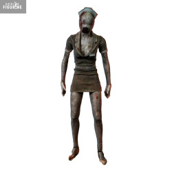 This figure faithfully recreates her disturbing appearance: a short, wrinkled nurse outfit, torn and bloodstained, limp arms, and a warped, bandaged head in place of a face. The crushed medical cap and total lack of features add to the unease. Long legs smeared with dried blood and worn-out heels complete the nightmare-like look.