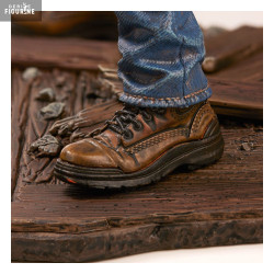 This figure faithfully recreates James’s in-game appearance: unkempt hair, weary eyes, a worn green jacket, blue jeans, and rugged shoes. He grips a wooden plank with nails — one of the first makeshift weapons he uses. His pose reflects tension and resolve, capturing a moment of looming danger. The detailed base features broken ground elements, including a soda can, perfectly echoing the grim setting of the game.