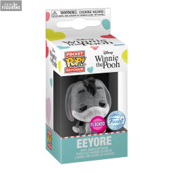 Eeyore w/heart flocked official keychain in vinyl about 4 centimeters high. The manufacturer is Funko.