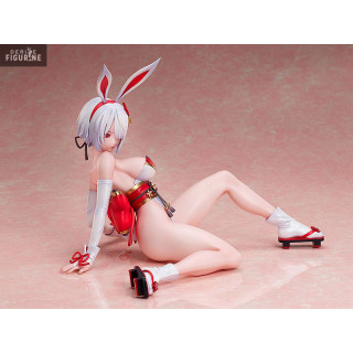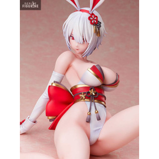 Shiraume is a beautiful woman who could be said to be albino because her skin is very fair, her hair is white and her eyes are red. This in no way detracts from her beauty, quite the contrary and you can admire her in an outfit that is light to say the least, with a belt and a big bow in the back. Finally, she wears a headband with bunny ears.