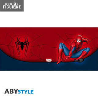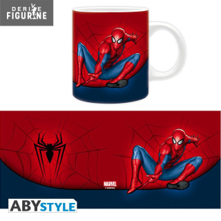 Here is a red and blue mug, in the colors of Spider-man. On one side, you have your favorite superhero, while on the other, we have the spider that is laid on his chest, on his suit.