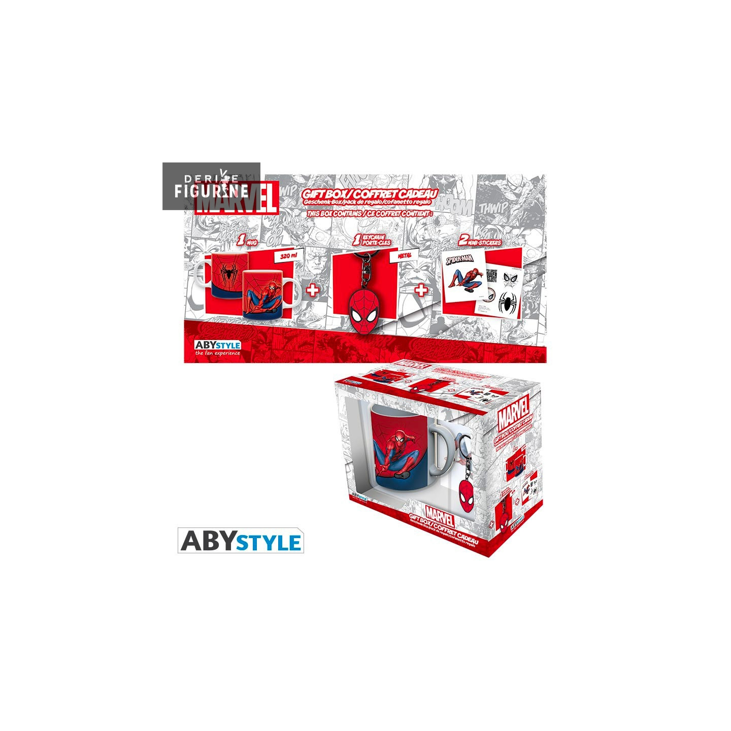 A birthday is approaching and you only know that the person loves Spider-man, do not bother you anymore. Here is a gift box with two stickers, a metal key ring and a 32 cl mug.