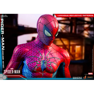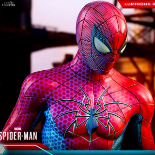 Peter Parker already has a lot of work in front of shooting films, but he always does more because he also has to make his own video games. It is from one of them that this figurine is taken. Since it is a Hot Toys, the clothes are made of fabric for more realism but what is really great about it is that patterns appear when the costume is lit with black light. In addition to the many accessories, you have two pillars that are justly equipped.