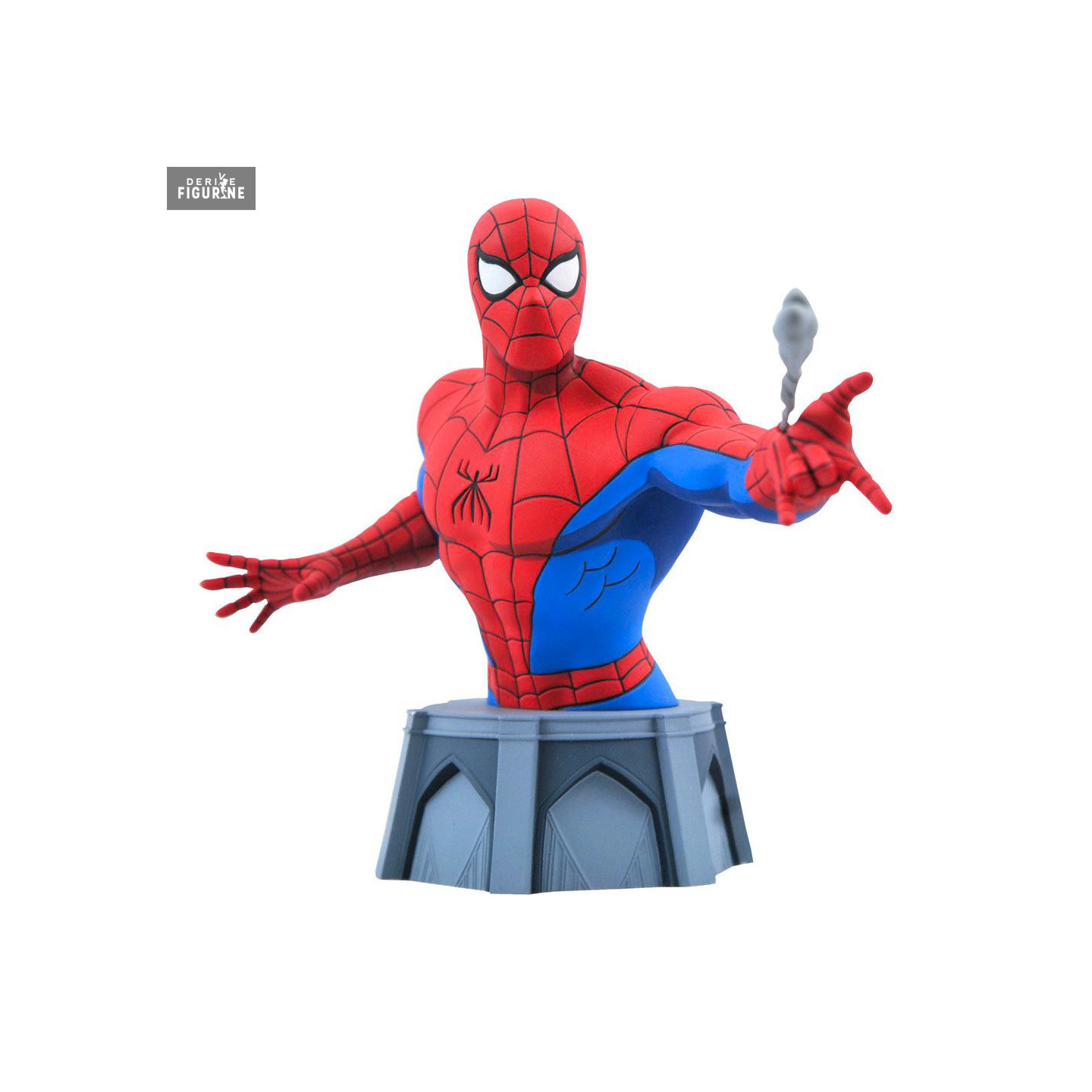 This Spider-Man bust is really very likable because not only does it immortalize Peter Parker right on when he throws one of his cobwebs, but also because the way he's painted really makes it look like he's straight out of the cartoon of the time. So if you adore Spider-Man, this bust is the item for you and on top of that, know that it is finished and hand painted and comes with a Certificate of Authenticity.