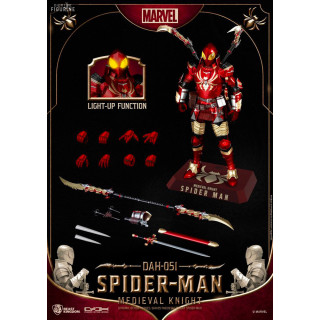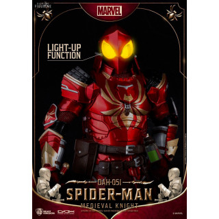 Official figure of Spider-Man, Medieval Knight which measures approximately 20 centimeters high, scale 1/9. It is from the Dynamic 8ction Heroes collection. The manufacturer is Beast Kingdom. LED lighting with 4 LR41 batteries not included.