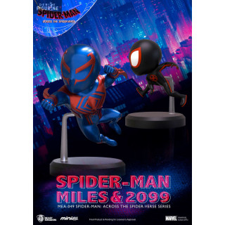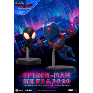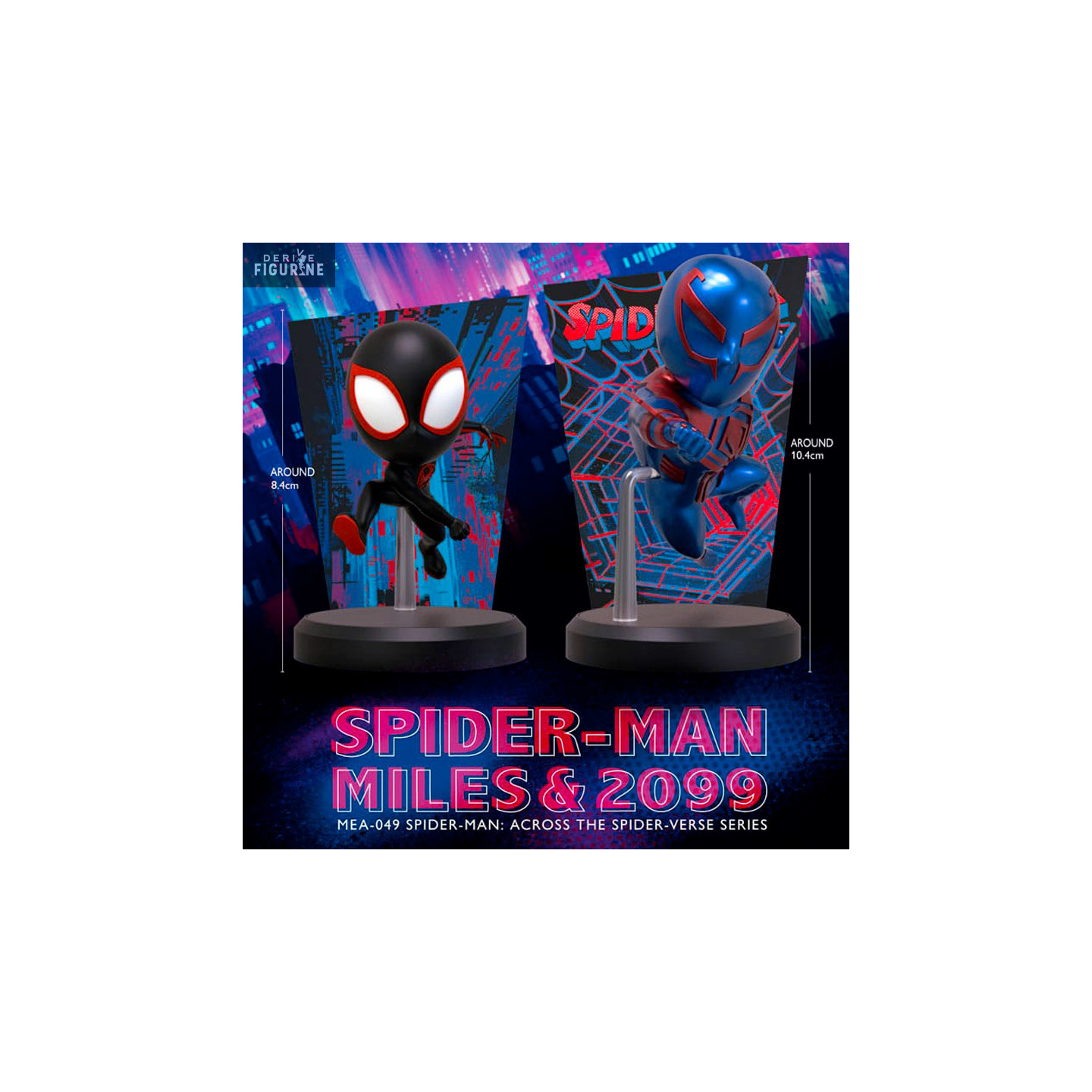 Official pack figures of Spider-man Miles & 2099 in PVC which measures about 8 centimeters high. It is from the Mini Egg Attack collection. The manufacturer is Beast Kingdom.