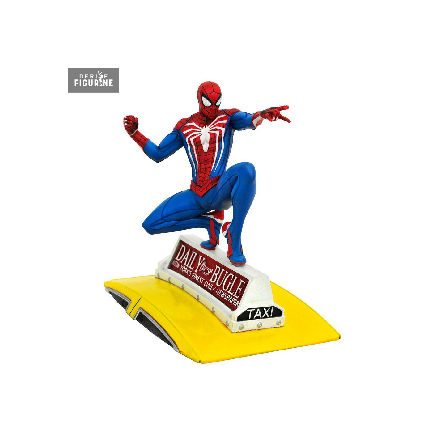This 23-centimeter tall PVC figure from the Gallery collection, crafted by Diamond Select Toys, perfectly conveys Spider-Man’s dynamic energy. The acrobatic pose, intricate detailing in the folds of his red and blue costume, and the accurate recreation of the white spider emblem on his chest all highlight the figure’s craftsmanship. The unique base, featuring a Daily Bugle sign atop a classic yellow taxi, roots the scene firmly in New York and adds a sense of motion. A striking piece for fans of the Marvel’s Spider-Man game and Marvel collectors alike.